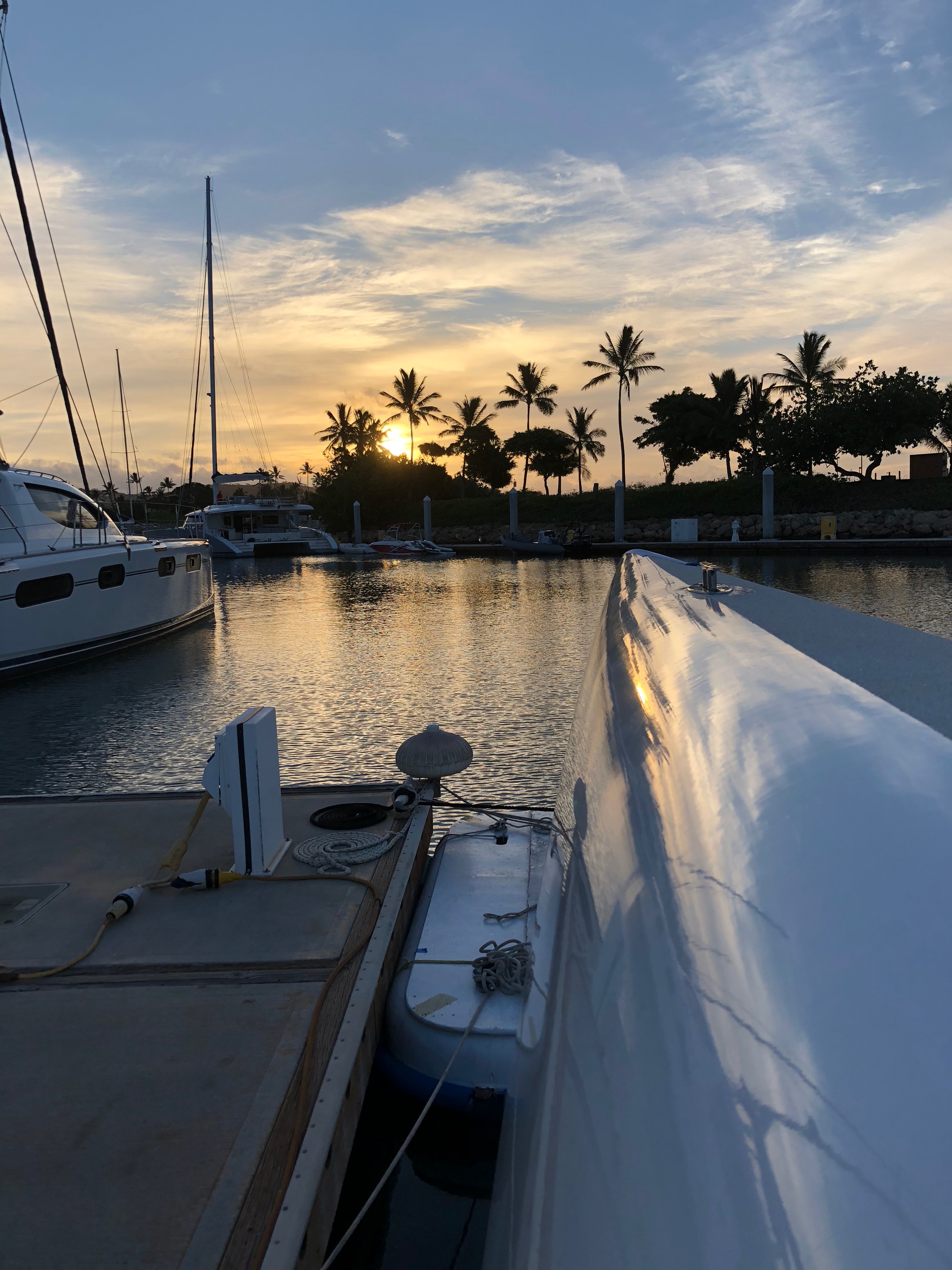 Rosinante is rigged with an emphasis on simplicity, reliability, and ease of handling. She has had her standing rigging replaced and upgraded to 5/8” 1×19 port & stdb and a 9/16” dyform headstay, 1” Navtec Turnbuckles, toggles, etc., and most important, a new custom s/s mast crane by Buzz Ballard. Her single-spreader, carbon fiber wing mast rotates on a titanium ball and socket joint and towers 92’ above the water. Fractionally rigged with a self- tacking non-overlapping jib allows for effortless tacks and automatic depowering of the mainsail in puffs. Halyards are lead through stoppers to an electric, self-tailing Harken winch mounted on the starboard side of the mast. The full battened mainsail stows easily atop the carbon fiber boom fitted with four “wings” and Doyle Cradle Cover. Once the mainsail is hoisted all other controls including mainsheet and traveller, mast rotation, jib furling, jib sheet and traveller are led aft to the cockpit within easy reach of the helmsman. In fact Rosinante is capable of being sailed shorthanded or singlehanded.
